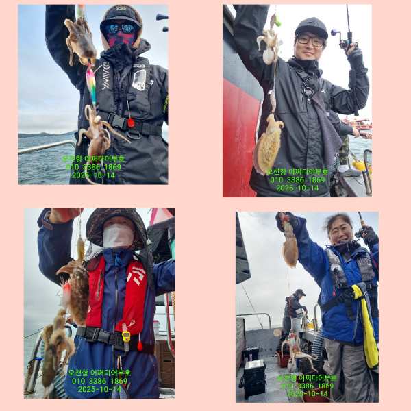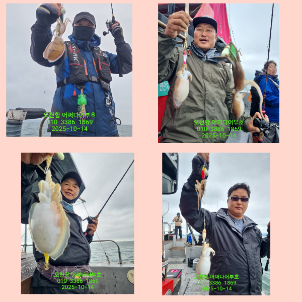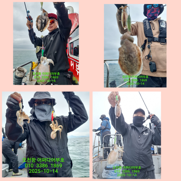 ![]() ![]() ![]() ![]() 25년 10월 14일 화요일 물때ㅡ깡패ㅋ조금 어종ㅡ쭈꾸미 10월 중순에 싸이즈 ☆☆☆☆☆ 조황 ☆☆☆☆☆ 날씨 ☆☆☆☆ 이정도면 호조황?^^ 즐기면서 친구ㆍ가족과 낚시하셨길요 수고들하셨습니다 다음주부터 자리여유있습니다 시간되시는분들' 예약해주세요^^ === 어쩌다 어부호 예약안내 === 예약문의 : 010-3386-1869 / 표성민 010-9701-3074 / 홍유미 홈페이지 : http://fisherman.sunsang24.com/ 계좌안내 : 수협 / 2010-0919-4672 / 홍유미 |