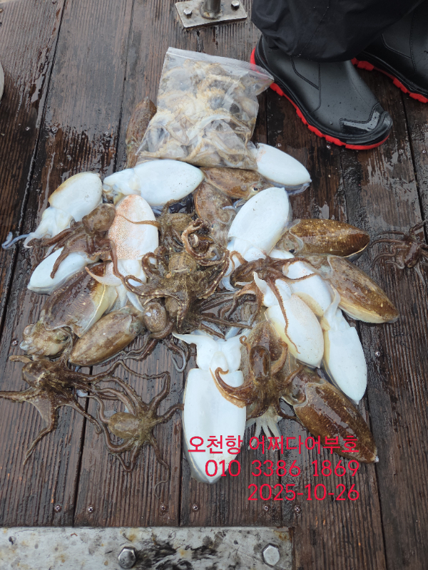 ![]() ![]() ![]() ![]() ![]() ![]() ![]() ![]() ![]() ![]() ![]() ![]() 25년 10월 26일 일요일 물때 12물 어종ㅡ갑오징어 궂은날씨에 여기저기 쫓겨다니며 줍줍해보았습니다 주말만되면 날씨가 얄밉네요 ㅜㅡ 먼바다에서 안으로 안으로 들어오면서 잡았어요 수고들하셨습니다 ㅡㅡ10월 10월28일ㅡ화요일 1자리여유 ㅡㅡ11월 평일자리여유있습니다 11월 3일ㅡ월요일 ㅡ자리여유 === 어쩌다 어부호 예약안내 === 예약문의 : 010-3386-1869 / 표성민 010-9701-3074 / 홍유미 홈페이지 : http://fisherman.sunsang24.com/ 계좌안내 : 수협 / 2010-0919-4672 / 홍유미 |